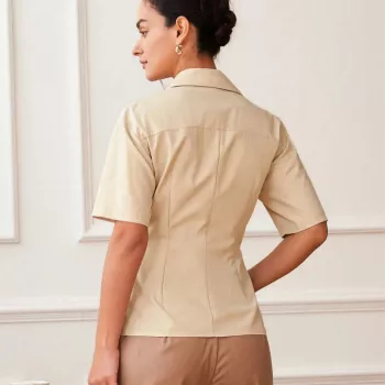 Elegant Women's Lapel Short Sleeve Slim Fit Ruched Blouse
