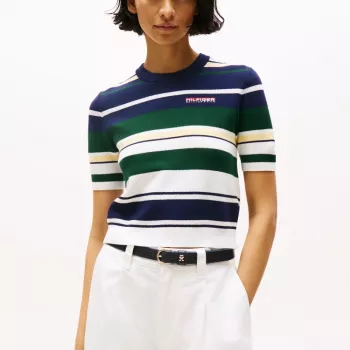 TOMMY HILFIGER Women's Cropped Nautical Stripe Jumper - Short Sleeve